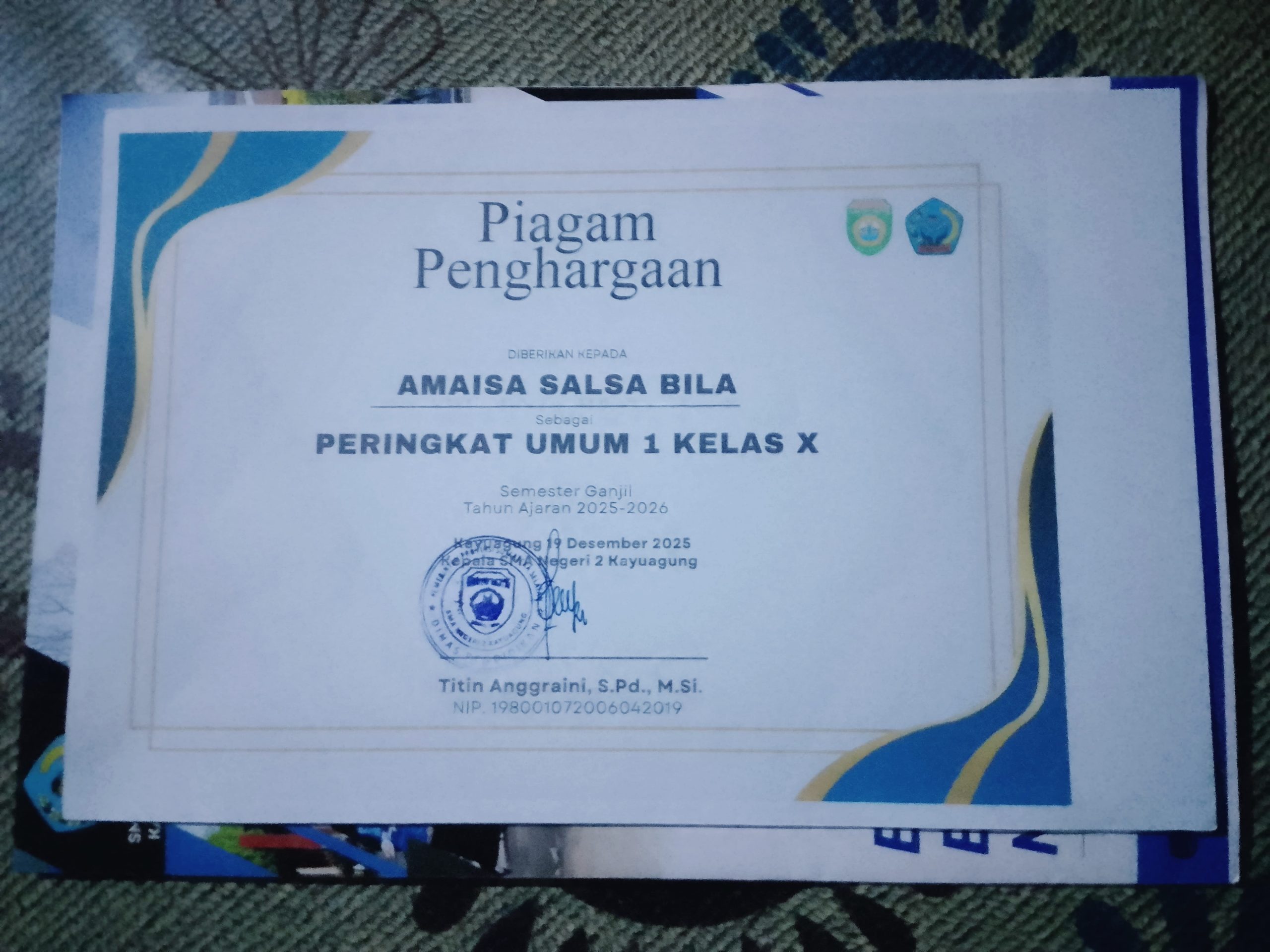 Adapun peserta didik yang meraih juara umum salah satunya Amaisa salsa bila dari kelas X , selain juara umum dia juga mendapatkan peringkat 1 kelas X E4.