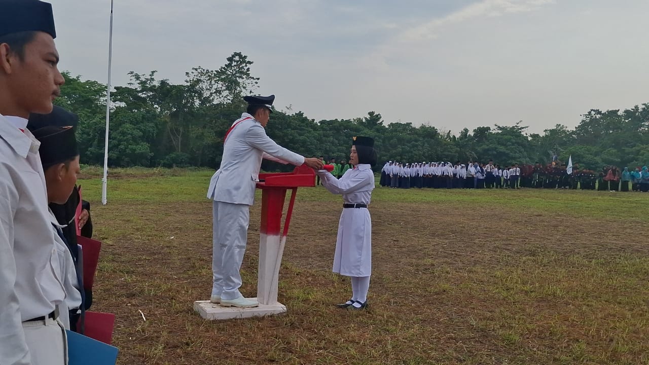 Kepala Desa Sungai Baung bertindak sebagai inspektur upacara, diikuti oleh Siswa/Siswi SDN, Karang Taruna serta warga desa dan perangkat desa setempat, Minggu (17/08/2025)