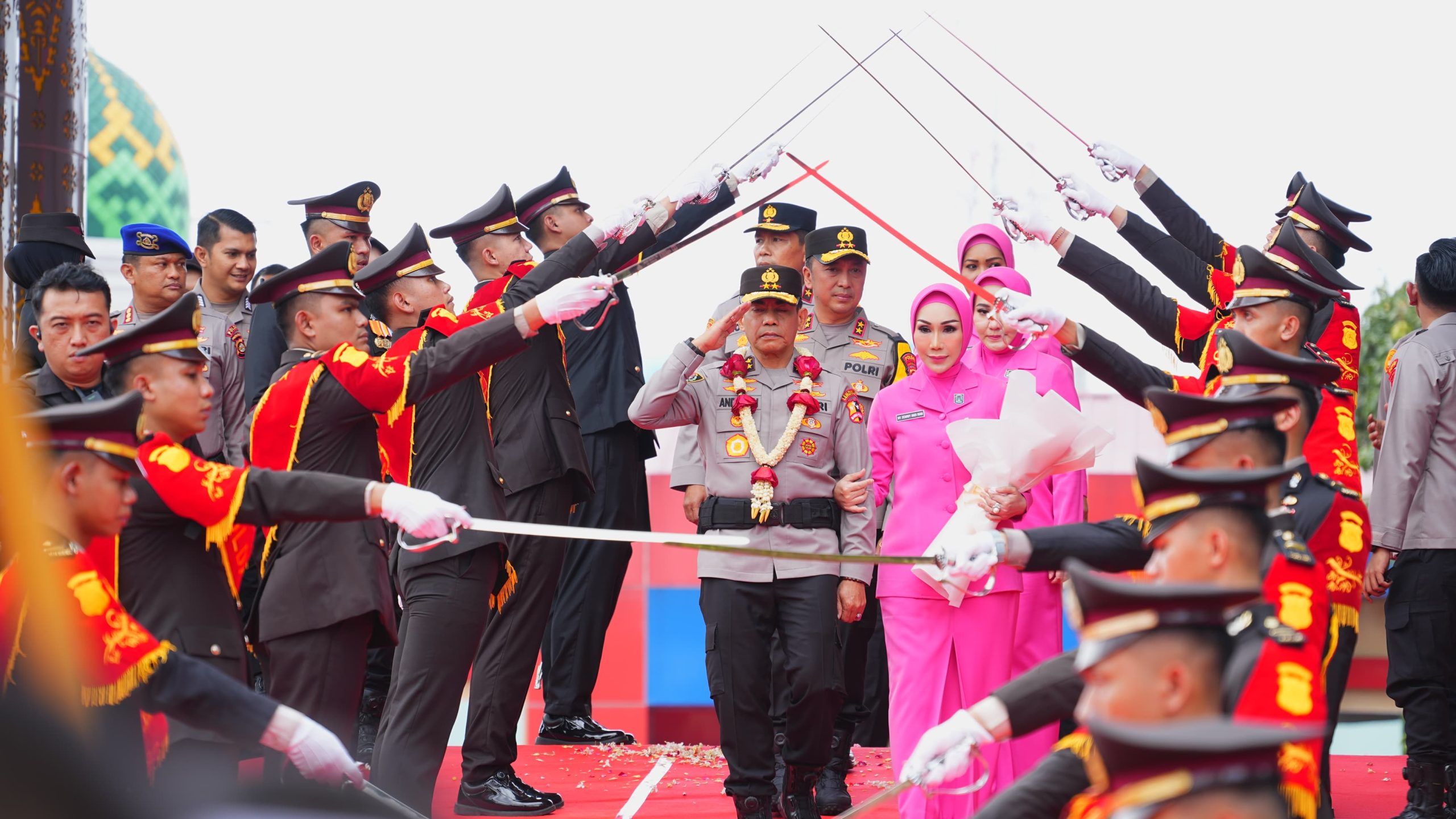 Momen pelepasan berlangsung khidmat dan penuh rasa kekeluargaan. Tradisi pedang pora mengiringi langkah Irjen Pol Andi Rian R Djajadi ,SIK,M.H beserta isteri saat berpamitan dengan seluruh jajaran Polda Sumsel sebagai bentuk penghormatan atas pengabdian dan dedikasinya.