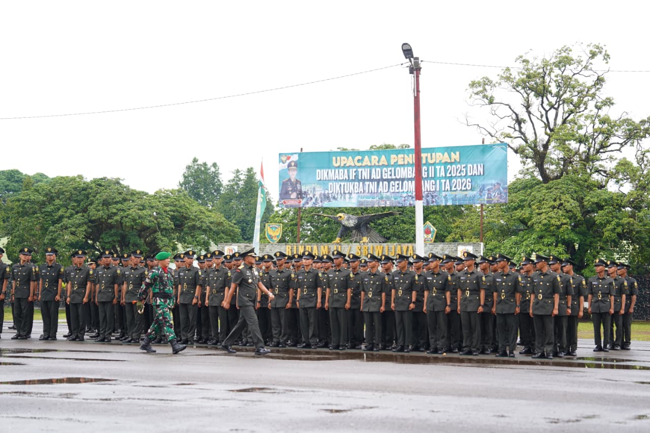 MEDIAPAGI.CO.ID, Lahat -Kasdam II/Sriwijaya Brigjen TNI Iwan Ma’ruf Zainudin, S.E., M.M., secara resmi menutup Pendidikan Pertama Bintara (Dikmaba) Infanteri Gelombang II TNI AD TA 2025 dan Pendidikan Pembentukan Bintara (Diktukba) Gelombang I TNI AD TA 2026, bertempat di Lapangan Secata Rindam II/Sriwijaya, Lahat, Rabu (07/01/2026).