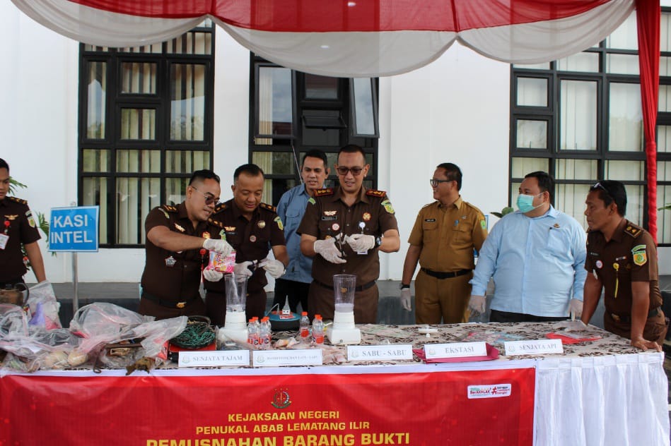 Kegiatan pemusnahan barang bukti tersebut dipimpin langsung oleh Kepala Kejaksaan Negeri Penukal Abab Lematang Ilir Farriman Isandi Siregar, SH, MH, didampingi oleh Kepala Seksi Pemulihan Aset dan Pengelolaan Barang Bukti (PAPBB) Bapak Alfian Jauhari Hanif, SH, MH, dan dihadiri oleh Kepala Seksi Intelijen Bapak Rido Dharma Hermando, SH, MH, Kepala Seksi Tindak Pidana Khusus Bapak Enggi Elber, SH, MH, Kepala Seksi Tindak Pidana Umum Bapak Julfadli, SH, Kepala Seksi Perdata dan Tata Usaha Negara Bapak Patar Daniel Pangabean, SH, MH, Para Kasubsi dan Jaksa Fungsional, serta Seluruh Pegawai pada Kejaksaan Negeri Penukal Abab Lematang Ilir.
