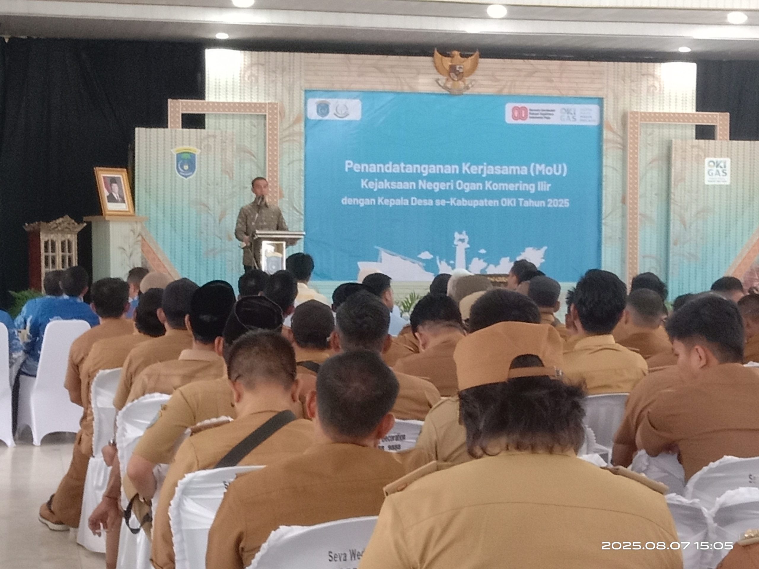 Penandatanganan MoU antara Kejari OKI dengan para kades se-Kabupaten OKI tahun 2025 ini digelar di Pendopoan Kabupatenan OKI, disaksikan langsung oleh Bupati OKI H. Muchendi Mahzareki SE M.Si, Kapolres OKI, Ketua DPRD OKI, Plt Kepala BNNK OKI, serta para Kepala OPD.