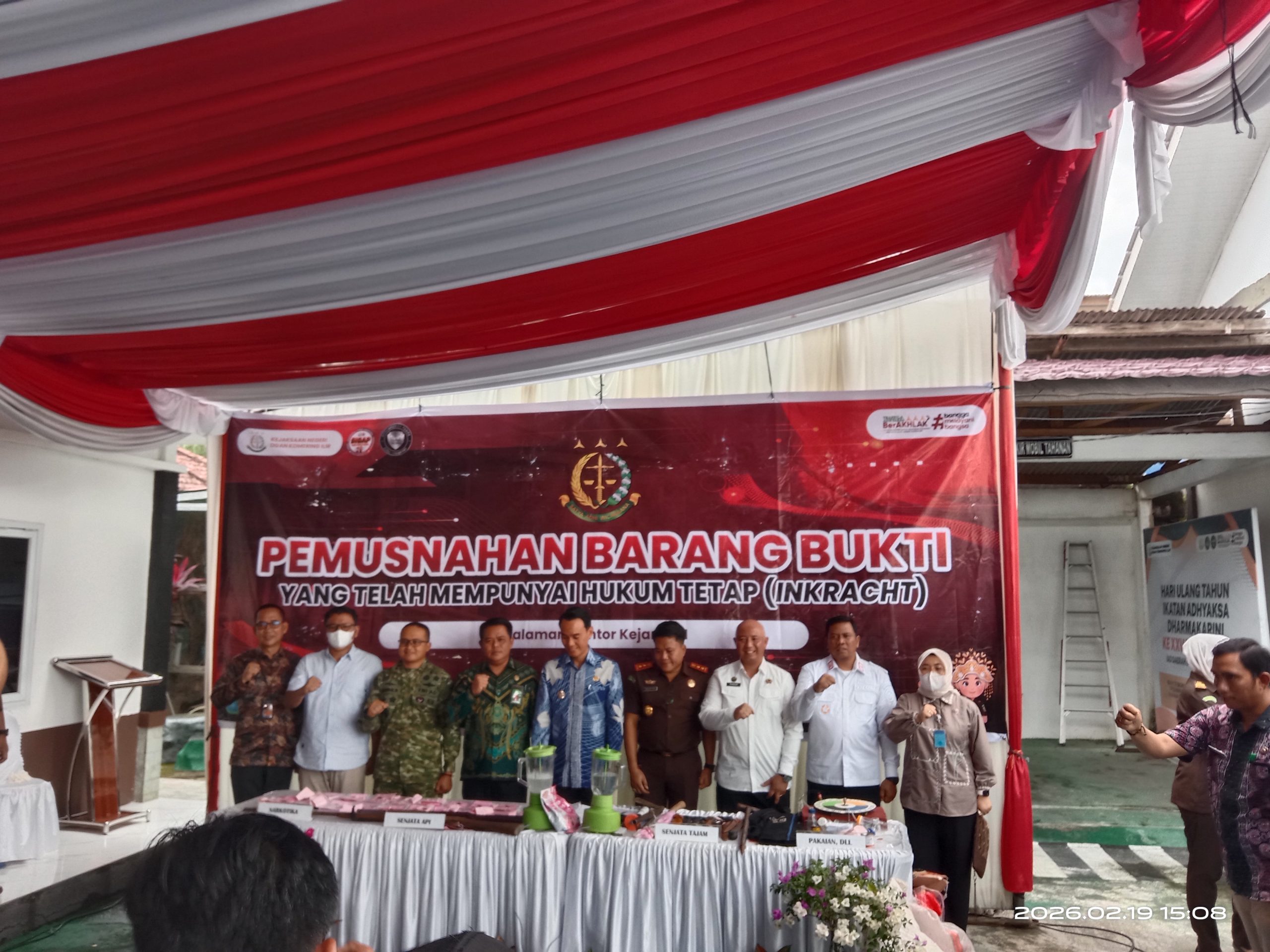 MEDIAPAGI.CO.ID, OKI — Kejaksaan Negeri Ogan Komering Ilir (OKI) melaksanakan kegiatan pemusnahan barang bukti perkara tindak pidana umum yang telah memiliki kekuatan hukum tetap (inkracht) periode September hingga Desember 2025. Kamis,(19/2) di Halaman Kantor Kejari OKI.