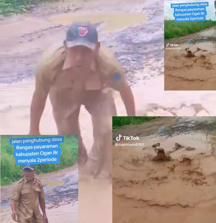 Aksi Mandi Lumpur yang Menghina Akal Sehat Kekuasaan. Viral di media sosial, konten kreator Teddy Etet Suhandi dengan sengaja berguling, berjoget, bahkan berendam di genangan lumpur pada jalan penghubung Desa Rengas–Payaraman, Kecamatan Payaraman, Ogan Ilir.