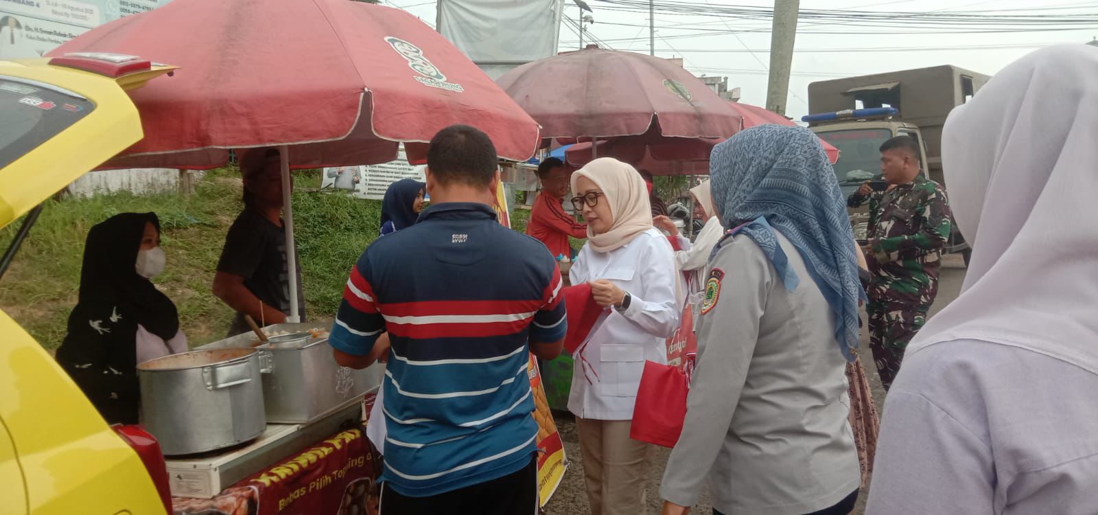 Ketua TP PKK Pali, Membagikan Bendera Merah Putih Kepada Warga dan Pedagang Kaki lima