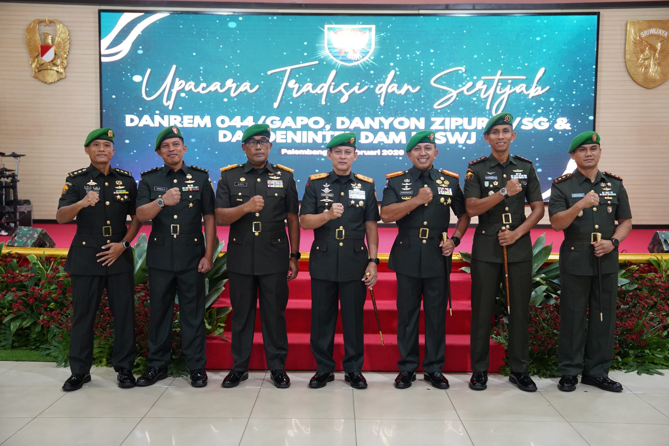 MEDIAPAGI.CO.ID, Palembang – Panglima Kodam II/Sriwijaya, Mayjen TNI Ujang Darwis, M.D.A., memimpin langsung Acara Tradisi Serah Terima Jabatan (Sertijab) Tiga Pejabat Jajaran Kodam II/Swj dan Tradisi Pelepasan Purna Tugas yang diselenggarakan di Gedung Sudirman Makodam II/Sriwijaya Palembang, Sabtu (28/02/2026).