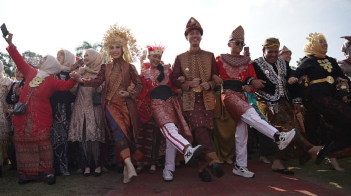 Deretan warna-warni pakaian adat tersebut semakin menyemarakkan suasana upacara, namun tetap kental dengan makna kebangsaan.