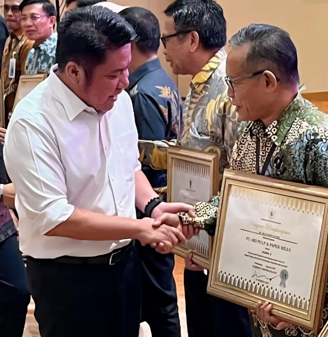 Vice Director PT OKI Pulp & Paper Mills, Gadang Harto Hartawan, menyampaikan rasa syukur dan apresiasinya atas penghargaan tersebut.