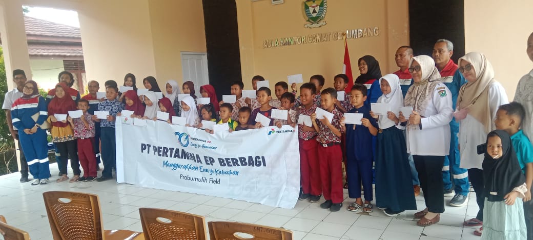 Penyerahan santunan ini digelar secara simbolis oleh Pertamina EP Field Prabumulih dan disambut Sekcam Gelumbang dan penerima manfaat.