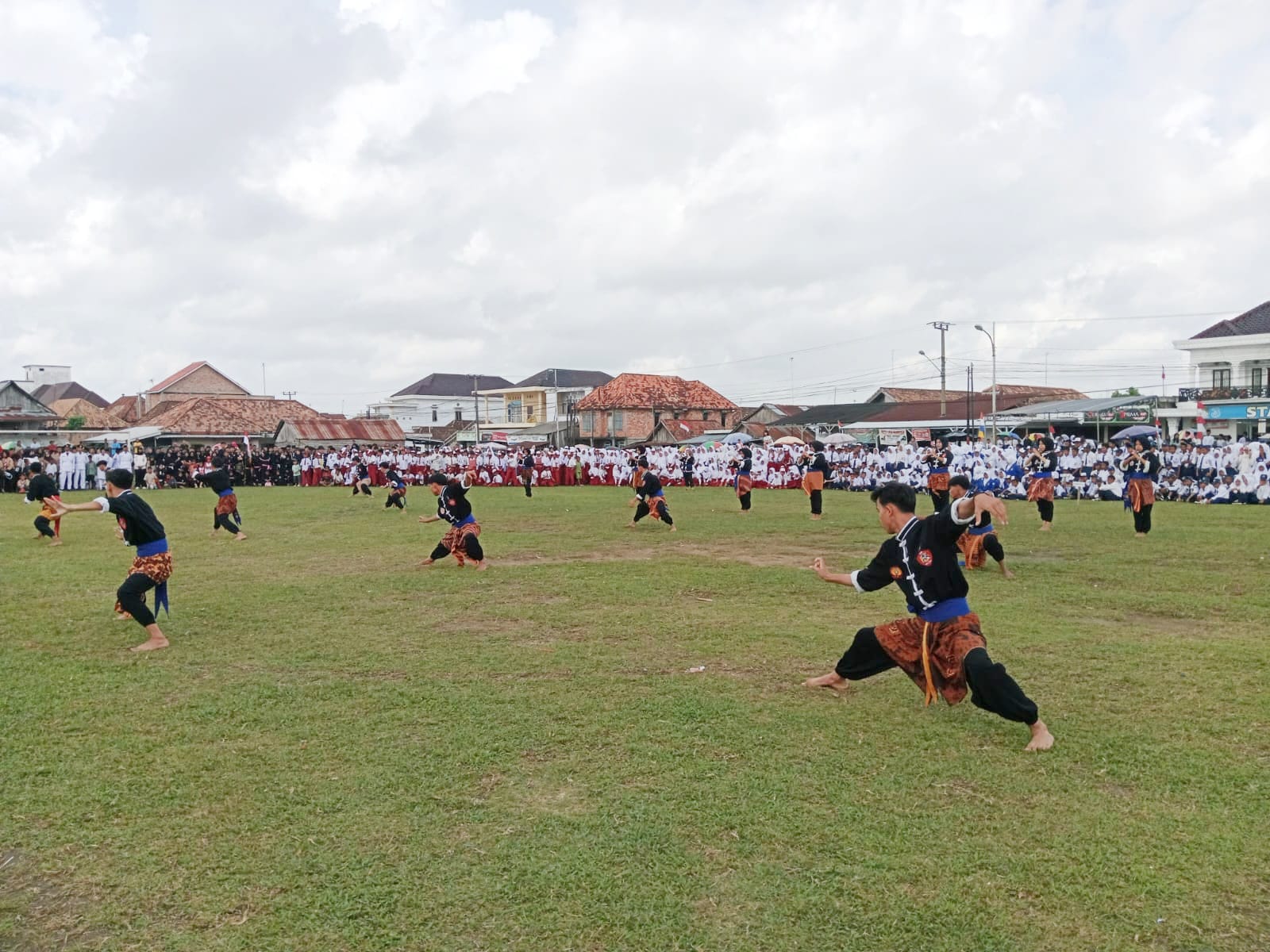 MEDIAPAGI.CO.ID. PEDAMARAN – Dalam rangka meriahkan Hari Ulang Tahun Kemerdekaan Republik Indonesia Ke-80 tahun 2025, Perguruan Ikatan Keluarga Silat Putra Putri (IKSPI) Kera Sakti binaan Koramil 402-02/Pedamaran melakukan pertunjukan aktraksi gerakan pencak silat yang sangat memukau pengunjung di lapangan bola kaki Stadion Bumi Urang Diri kecamatan Pedamaran kabupaten OKI provinsi Sumsel, (17/08/25).