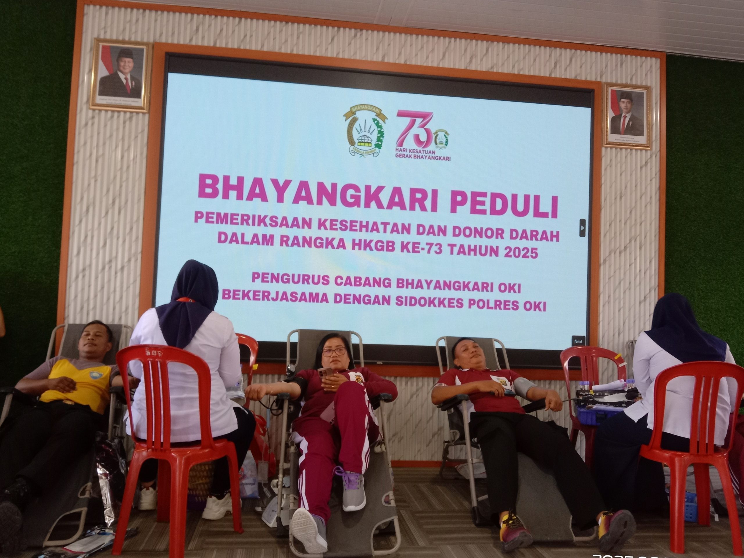 “Menurut Ina Melyati Kasi Dokkes Polres OKI, jumlah pendonor darah sekitar 80 orang dan kegiatan bakti kesehatan ini menjadi salah satu rangkaian peringatan Hari Bhayangkara ke-79 di Polres OKI yang mengusung Bhayangkari Peduli, pemeriksaan kesehatan dan donor darah dalam rangka HKGB Ke-73 tahun 2025”.